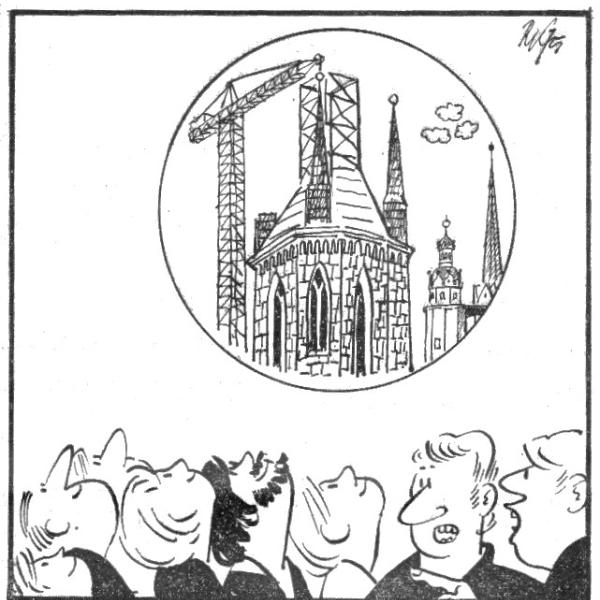 "In den Jahren [nach dem 2. Weltkrieg] wurde die Stadt auf dem alten Grundriss, aber in neuen Formen wiederaufgebaut - auch der Marktplatz. Dass die gute Stube Hildesheims nun von Betonfassaden gerahmt werde, damit mochten sich die Einwohner allerdings nicht abfinden.