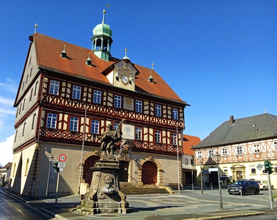 Foto: Nicht wenige historische Rathäuser wurden wieder aufgebaut. So auch, nach zweimaliger Zerstörung, das Alte Rathaus in Bad Staffelstein, das Wahrzeichen der Stadt. [bearbeitet am 20.4.2023]