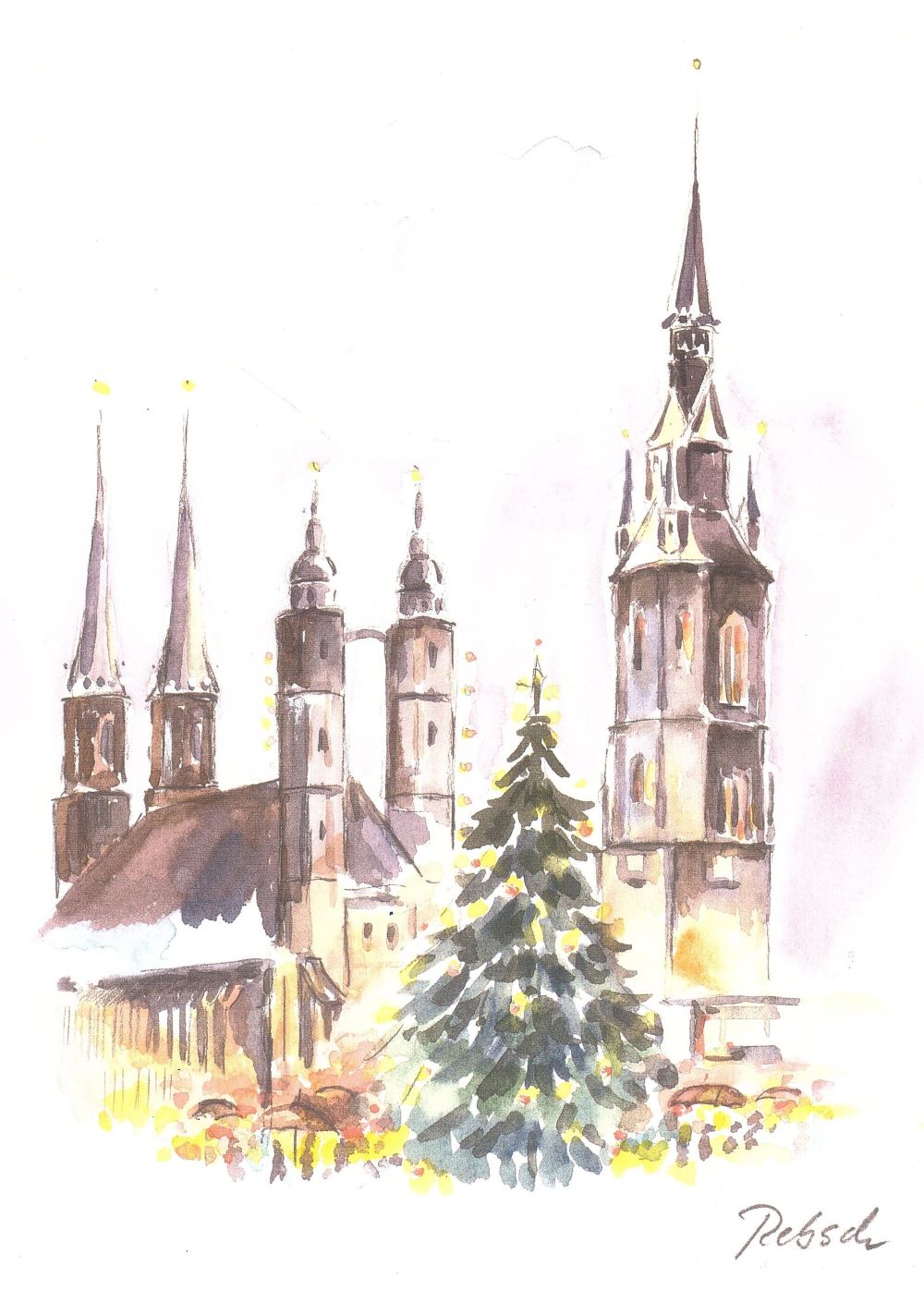 Sie können uns auf dem Weihnachtsmarkt (linke Vereinshütte am Roten Turm vom 14. bis 18.12.2024, (11 Uhr bis 20 Uhr) durch Spenden und den Erwerb unserer Produkte unterstützen. Zum Angebot gehört u.a. das hier gezeigte Bild von Klaus Rebsch mit den 5 Türmen und Weihnachtsbaum. Vielleicht möchten Sie auch auch einen Stifterbrief verschenken, der ab 200 Euro erhältlich ist? Wir beraten Sie gern.