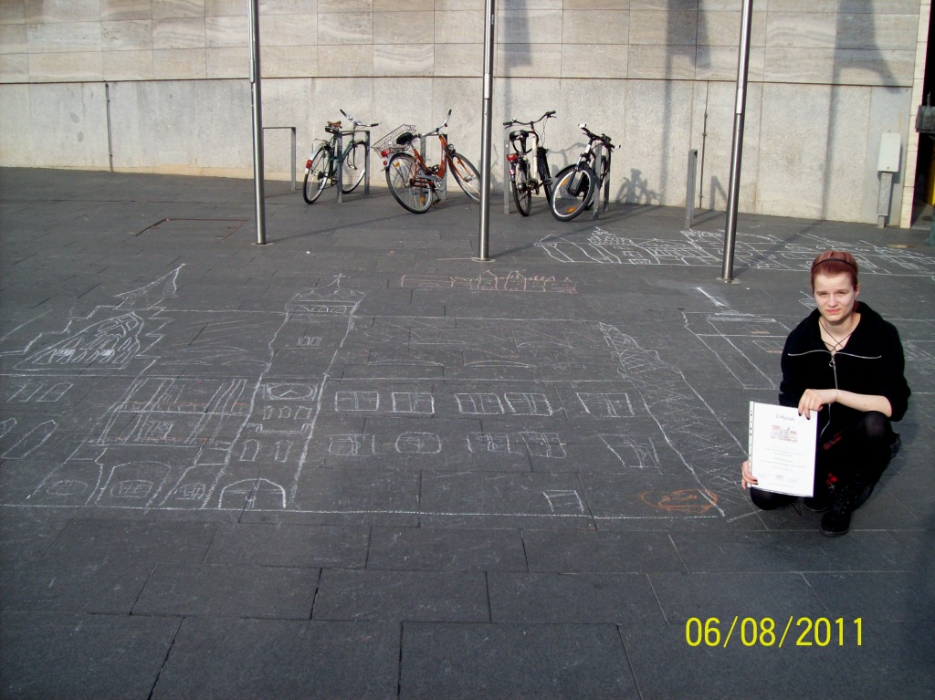 Die Witterung meinte es dieses Mal gut mit den Pflastermalern. Den ersten Platz des Kreidemalwettbewerbes belegte Jenny Schartau, die auch bei ihrer Arbeit von TV Halle gefilmt wurde (Sendung des TV-Beitrages am Abend des 8.8.2011). Der Juror, Maler und Grafiker Klaus Rebsch, würdigte ihr Talent und den Blick für das Detail.