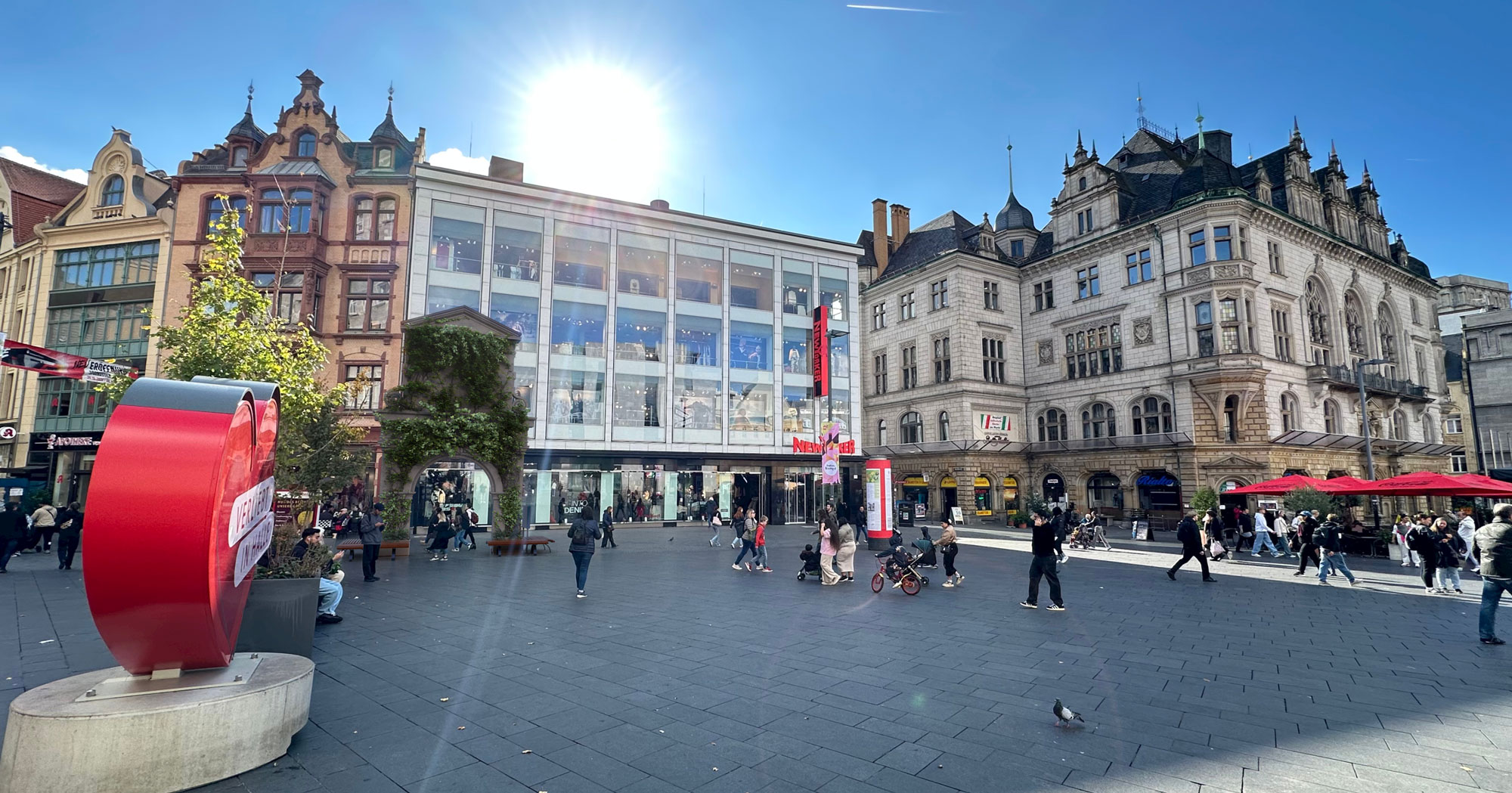 Blick am Tag auf die begrünte Rückseite des Barockflügel-Portals vom ehemaligen Kaufhof-Erweiterungsbau an der Rathausstraße (Norden) . Siehe auch den Kommentar zu dieser Ansicht im Abendlicht - veröffentlicht am 1. Januar 2026 unter Aktuelles.