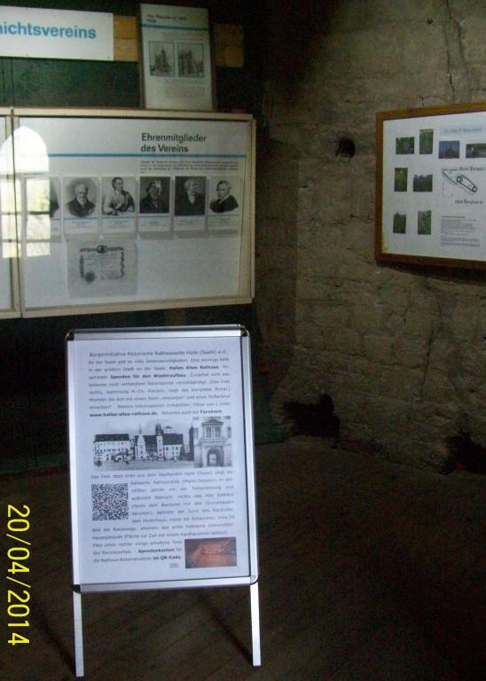 Seit Ostersonntag können sich die Turmbesucher der Burg Saaleck auch über die Hallesche Rathausseite und das Projekt "Wiederaufbau von Halles Altem Rathaus" informieren (siehe Foto). Der die Burg betreuende Heimatverein Saaleck e.V. hatte unserer Bürgerinitiative freundlicherweise eine Ausstellungsmöglichkeit angeboten.