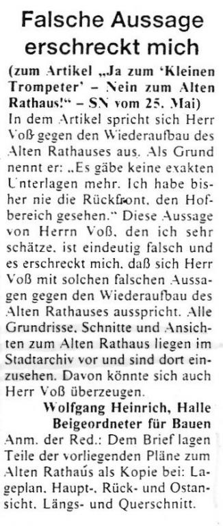 (zum Artikel "Ja zum 'Kleinen Trompeter' - Nein zum Alten Rathaus!" - SN vom 25. Mai)
