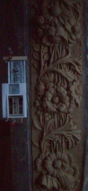 Der Anfang zur aufwendigen Nachbildung des floralen Reliefs zwischen den Portalfenstern - dem großen Portalstein Nr. 13 - ist gemacht. Bildhauer Christoph Reichenbach hat in seinem Atelier das Tonmodell vorgestellt (siehe Foto). Wenn es auch vor den fachkundigen Augen des Landesamtes für Denkmalpflege Bestand hat, fertigt er als nächsten Schritt ein Gipsmodell an, ehe die Bearbeitung des Sandsteins folgt.