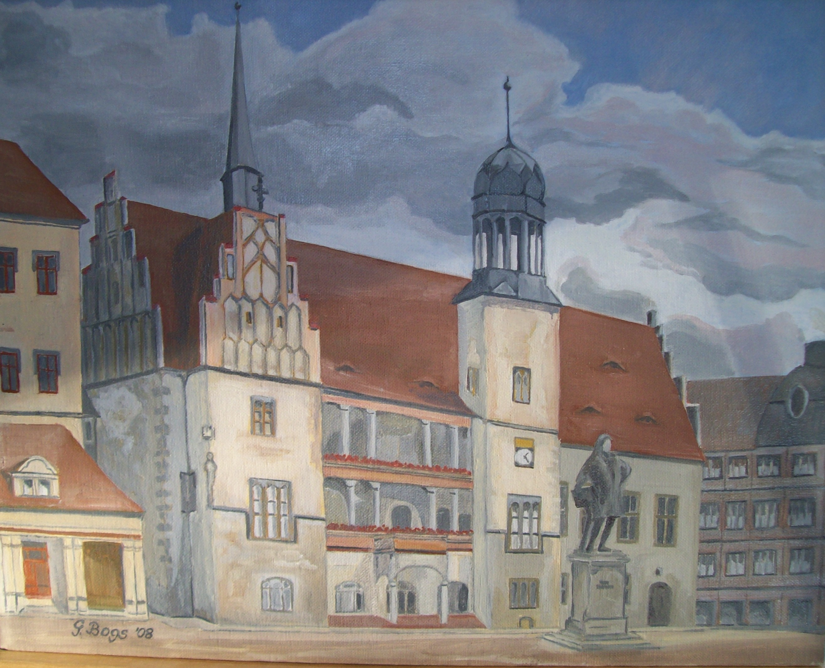 Frau G. Bogs verschenkte zu Weihnachten das Alte Rathaus - als Bild, von ihr gemalt (siehe Foto, BI-Archiv) in Anlehnung an ein Aquarell von Carl Jolas.