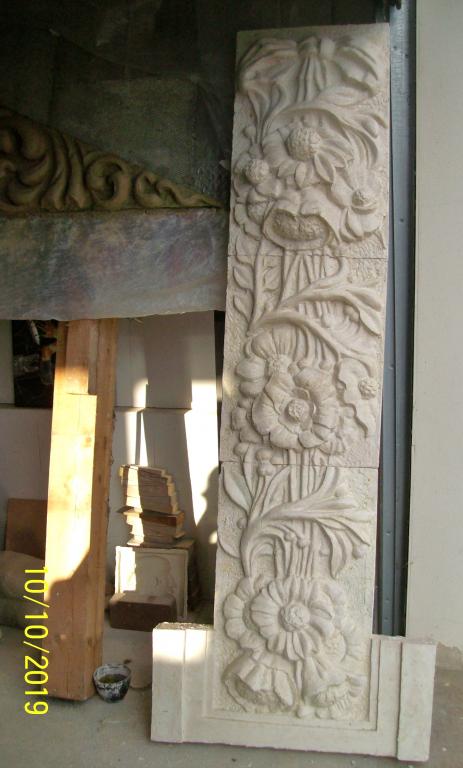 Abbildung: Gipsmodell des Portalsteins Nr. 13 (Relief zwischen den Portalfenstern). Das Modell bleibt erhalten und wird in der Niederlassung Teutschenthal der Aug. Hedinger GmbH & Co. KG wettergeschützt aufgestellt. Wir geben auch Gipsmodelle anderer Portalreliefs ab. Interessenten bitte melden.