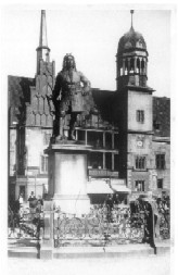 Foto: Händeldenkmal mit Halles Altem Rathaus (Sammlung W. Maiwald)
