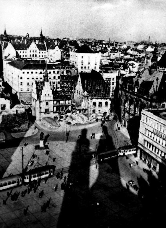 Heute - am 80. Jahrestag der Teilzerstörung des Alten Rathauses und der benachbarten Ratswaage - haben wir eine Schenkung privater Fotos aus Halles Kriegs- und Nachkriegszeit erhalten. Darunter befindet sich auch das hier abgebildete. Es zeigt den Blick von den Hausmannstürmen auf das ruinierte Alte Rathaus. Der Turm fehlt bei diesem Foto bereits. Da er nicht mehr standsicher war, wurde er zuerst abgetragen - Die Fotos sind bei uns am 1. und 2. April zwischen 12 und 18 Uhr in der Vereinshütte vor der Konzerthalle Ulrichskirche zu sehen und können dort erworben werden.