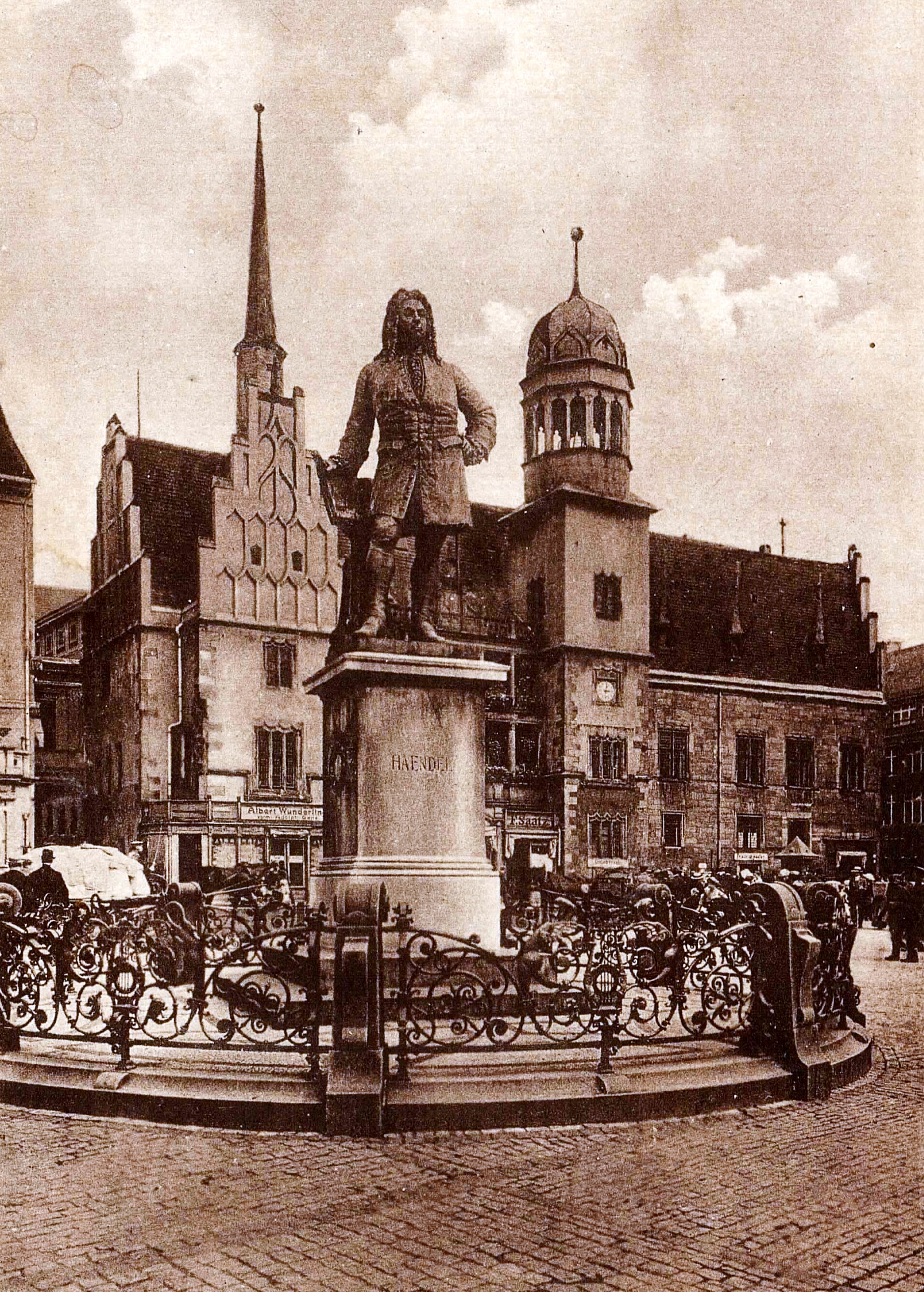 Abbildung: Händeldenkmal und Altes Rathaus (Sammlung U. Schröder)