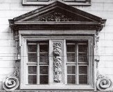 Foto: Oberes Teil des Barockflügel-Portals mit Dreieckgiebel und Zwillingsfenstern (Sammlung H.-Ch. Riecken, Bildausschnitt)