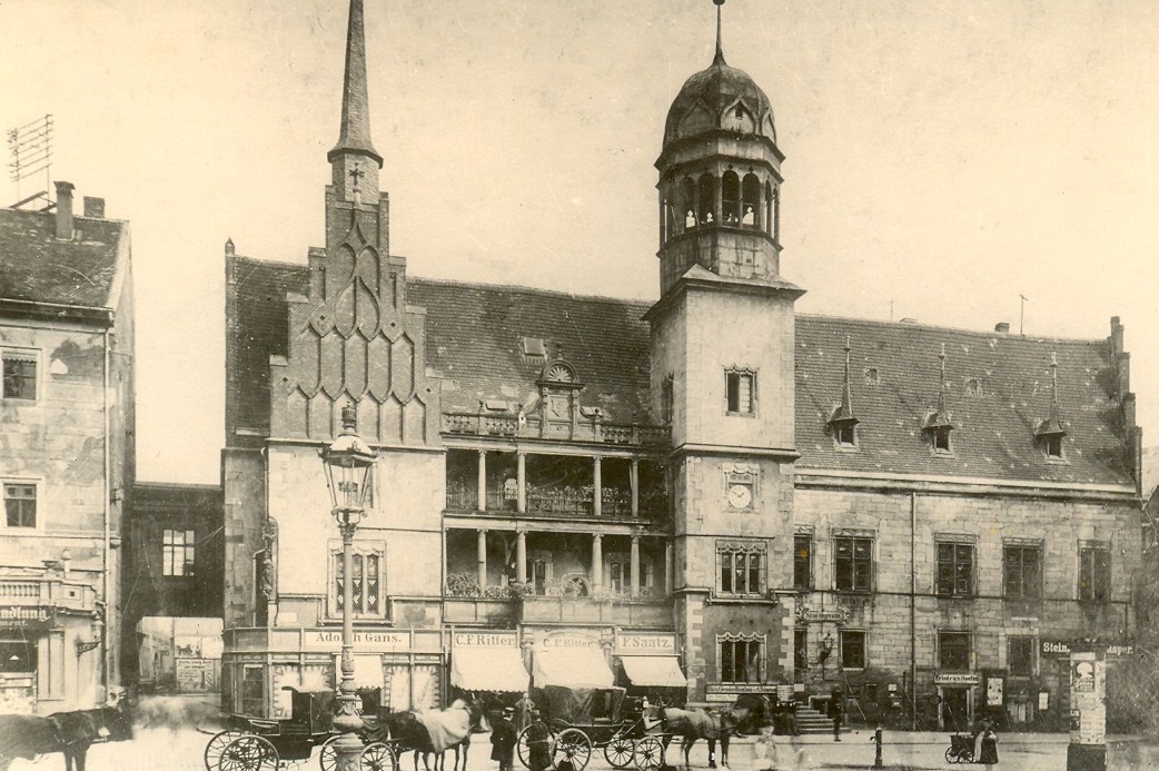 Abbildung: Altes Rathaus auf einer Ansichtskarte aus dem 19. Jahrhundert (Sammlung Barbara Schröter)