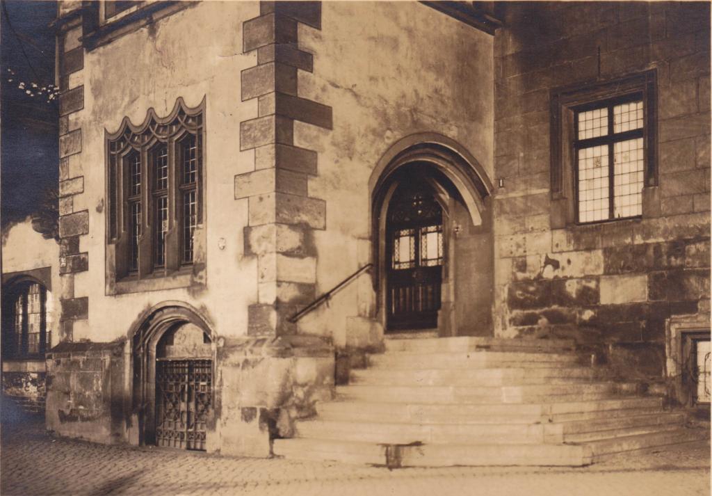 Foto: Eingang zum Alten Rathaus mit Abendbeleuchtung - Sammlung J. Hauke