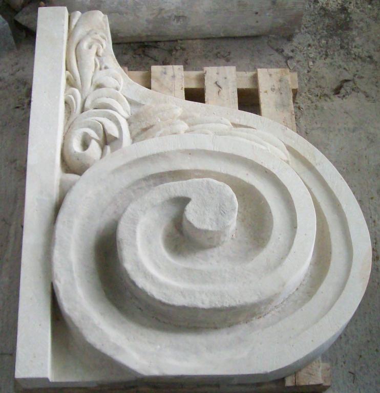Foto: Rechte Volute (Draufsicht) vor dem Transport zum "Charlottenhof"