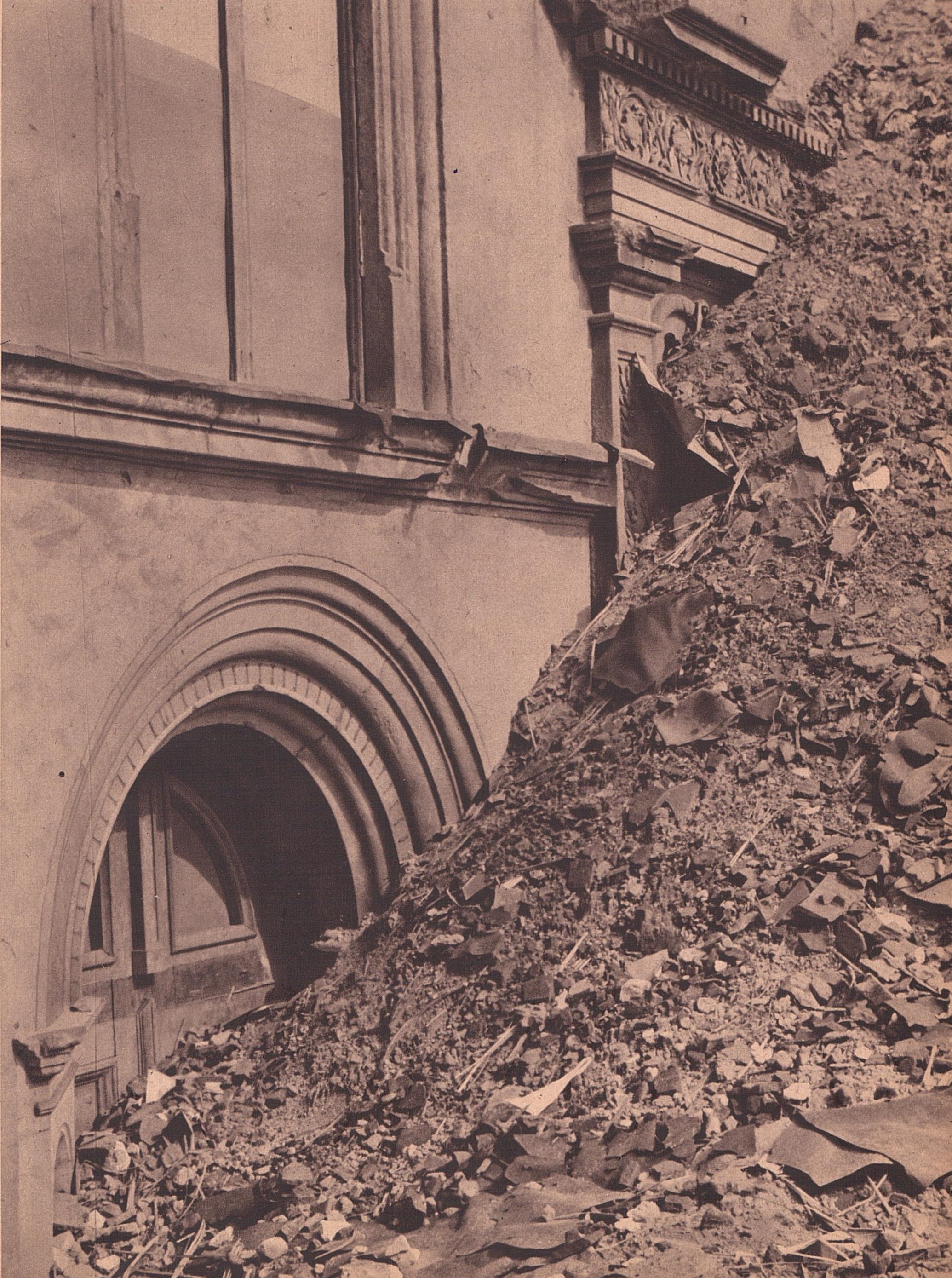 Abbildung: Schuttberg vor den Portalen der Ratswaage nach der Teilzerstörung (BI-Archiv)