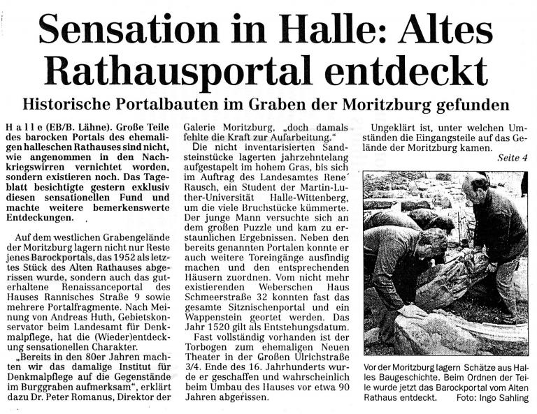 Sensation in Halle: Altes Rathausportal entdeckt (Hallesches Tageblatt)