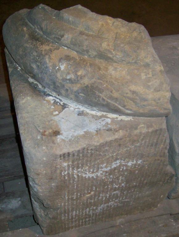 Foto: Teil einer Säule des Barockflügel-Portals, die im Halloren- und Salinemuseum lagert