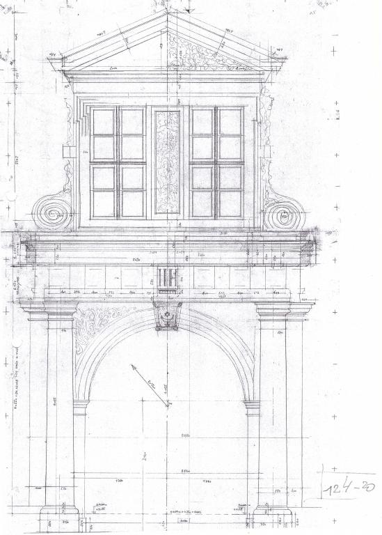 Foto: Bauzeichnung des Barockflügel-Portals von Architekt Manfred Sommer