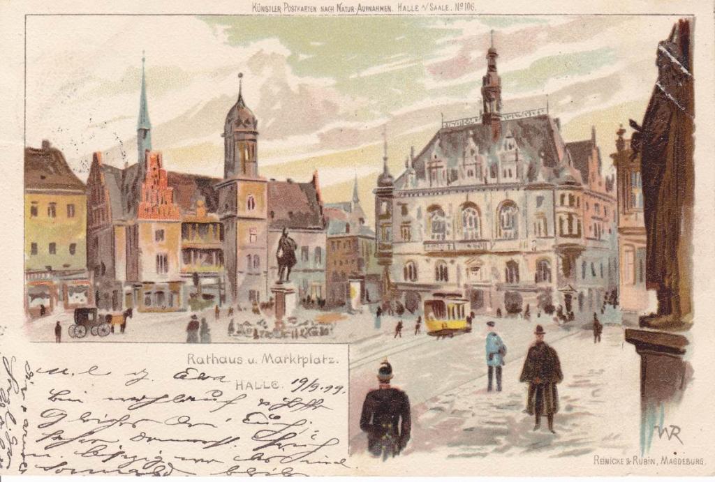 Abb. Altes Rathaus & Stadthaus auf einer Postkarte von 1899 (Sammlung J. Hauke)
