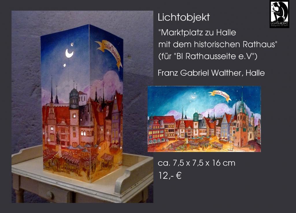 Abbildung: Lichtobjekt "Marktplatz zu Halle mit dem historischen Rathaus" des halleschen Künstlers Franz Gabriel Walther