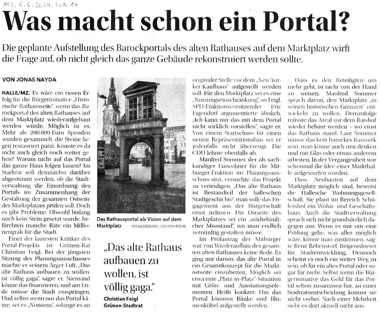 "Was macht schon ein Portal?" Mit dieser Frage beschäftigte sich Jonas Nayda in der Mitteldeutschen Zeitung (MZ) am 6. Juni 2024 (Seite 14)