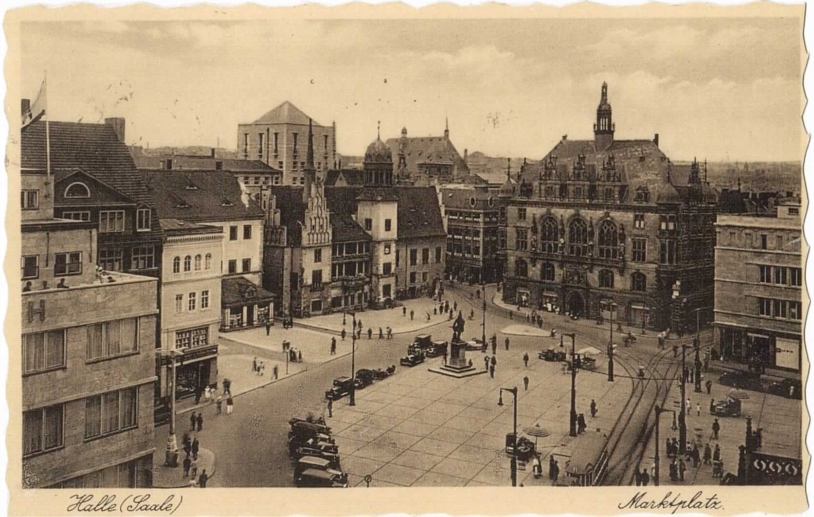 Abbildung: Historische Ansichtskarte mit Altem Rathaus, Ratshof dahinter und Stadthaus (Sammlung D. Fleischer; Ausschnitt)