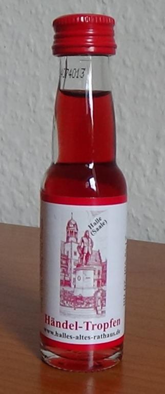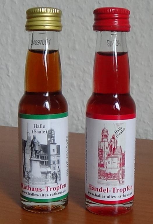 Eine neue Lieferung unserer "Rathaus-Tropfen" und "Händel-Tropfen" ist eingetroffen. Wegen des Sonderetiketts mit Halles Altem Rathaus hinter dem Händel-Denkmal wird dieser Kräuter- bzw. Sauerkirsch-Likör gern von Sammlern erworben. Das ist wieder am Sonnabend, dem 17. September 2022, zwischen 12 und 17 Uhr am Stand des Fördervereins vor dem Kaufhaus "New Yorker" möglich.