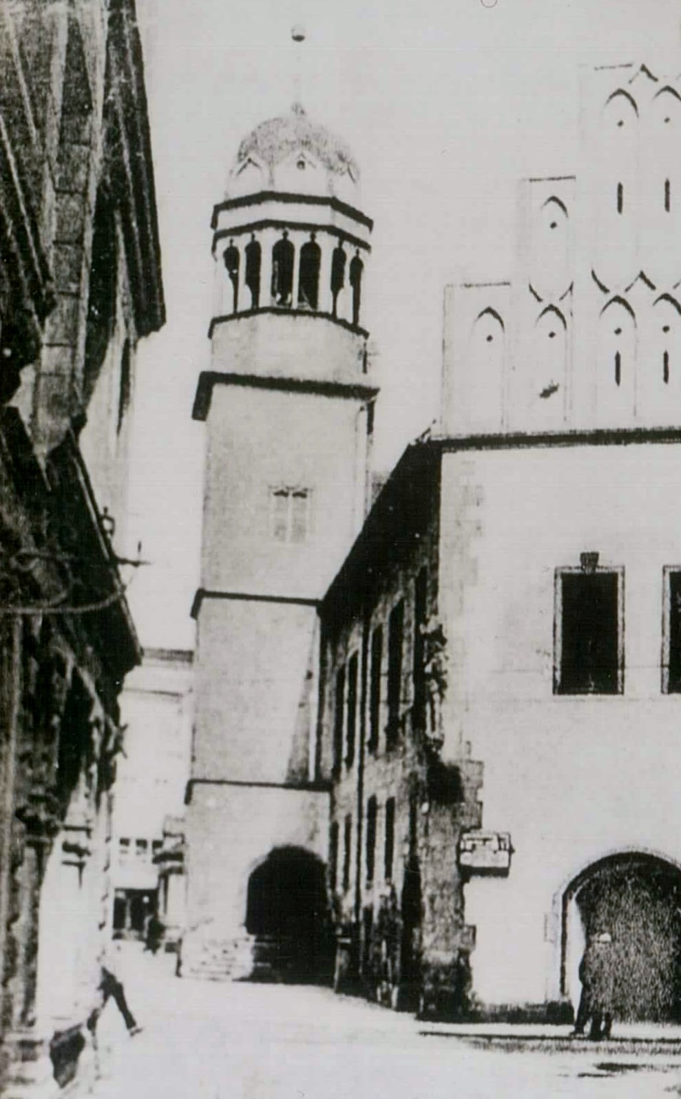 Abbildung: Blick aus der Großen Märkerstraße auf den Turm und Südgiebel des Alten Rathauses (Foto: BI-Archiv)