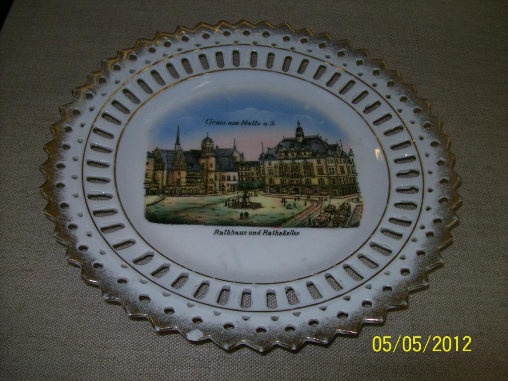 Weiterhin übergibt die Stiftung symbolisch den von Mitgliedern der Salzwirker-Brüderschaft gestifteten Portalstein an die Halloren. Diese werden in ihrem Festkleid erscheinen. - Foto: Historischer Zierteller mit Altem Rathaus und Stadthaus aus der Sammlung Michael Woudenberg
